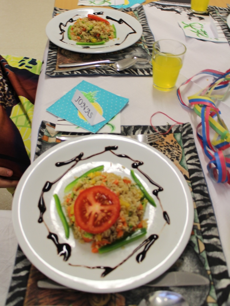 Als besondere Aktionen für die „Chefköche“ gab es im Schuljahr 2012/13 eine besondere Kochstunde, in der ein eingeladener Koch ihnen das schöne Anrichten und Garnieren, sowie abwechslungsreiche Präsentation der Speisen zeigte.